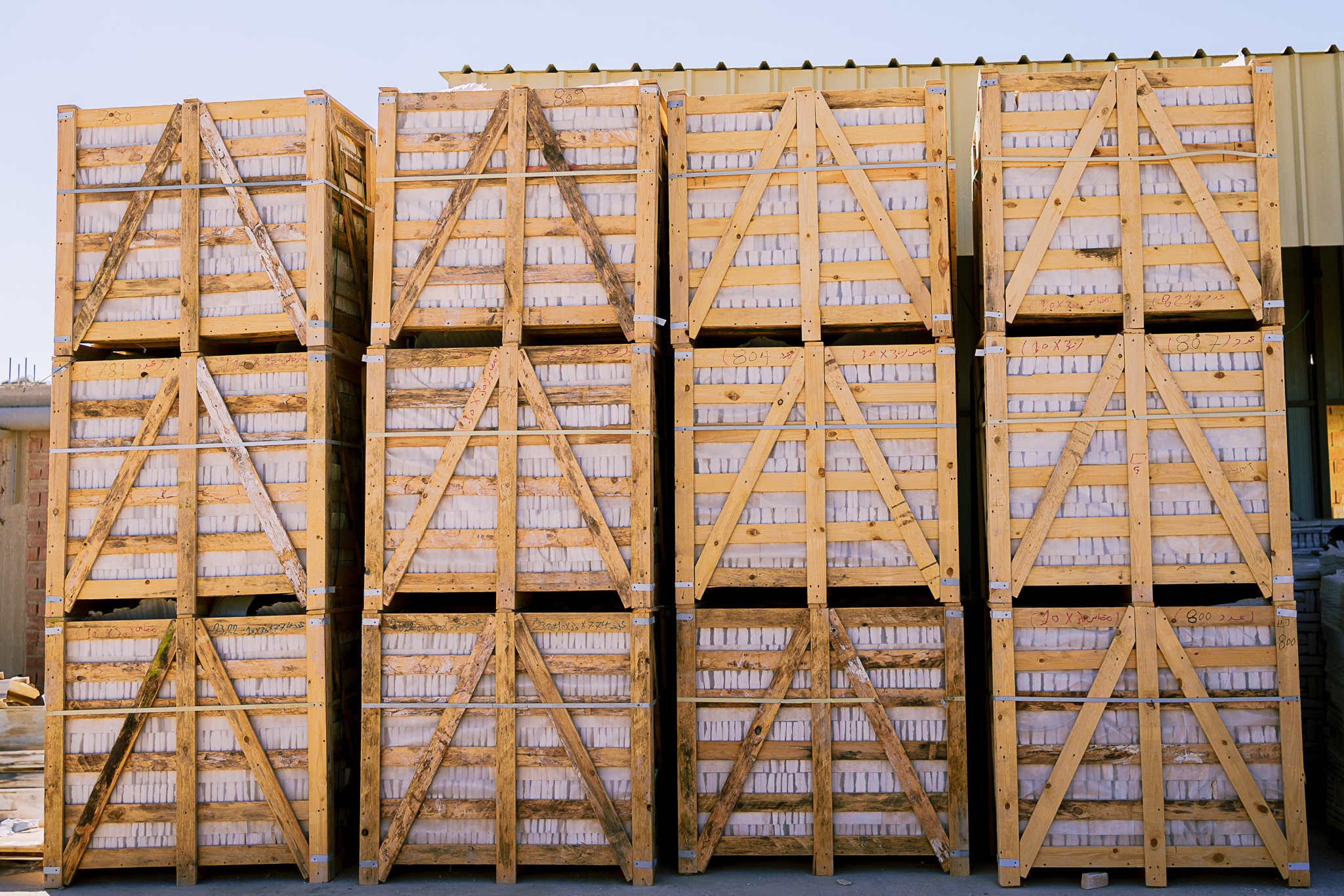 The packaging of Egyptian marble begins with using durable, shock-resistant materials, such as treated wooden crates, to protect it from damage during shipping. Layers of insulating materials are placed between the marble slabs to prevent friction and scratches.